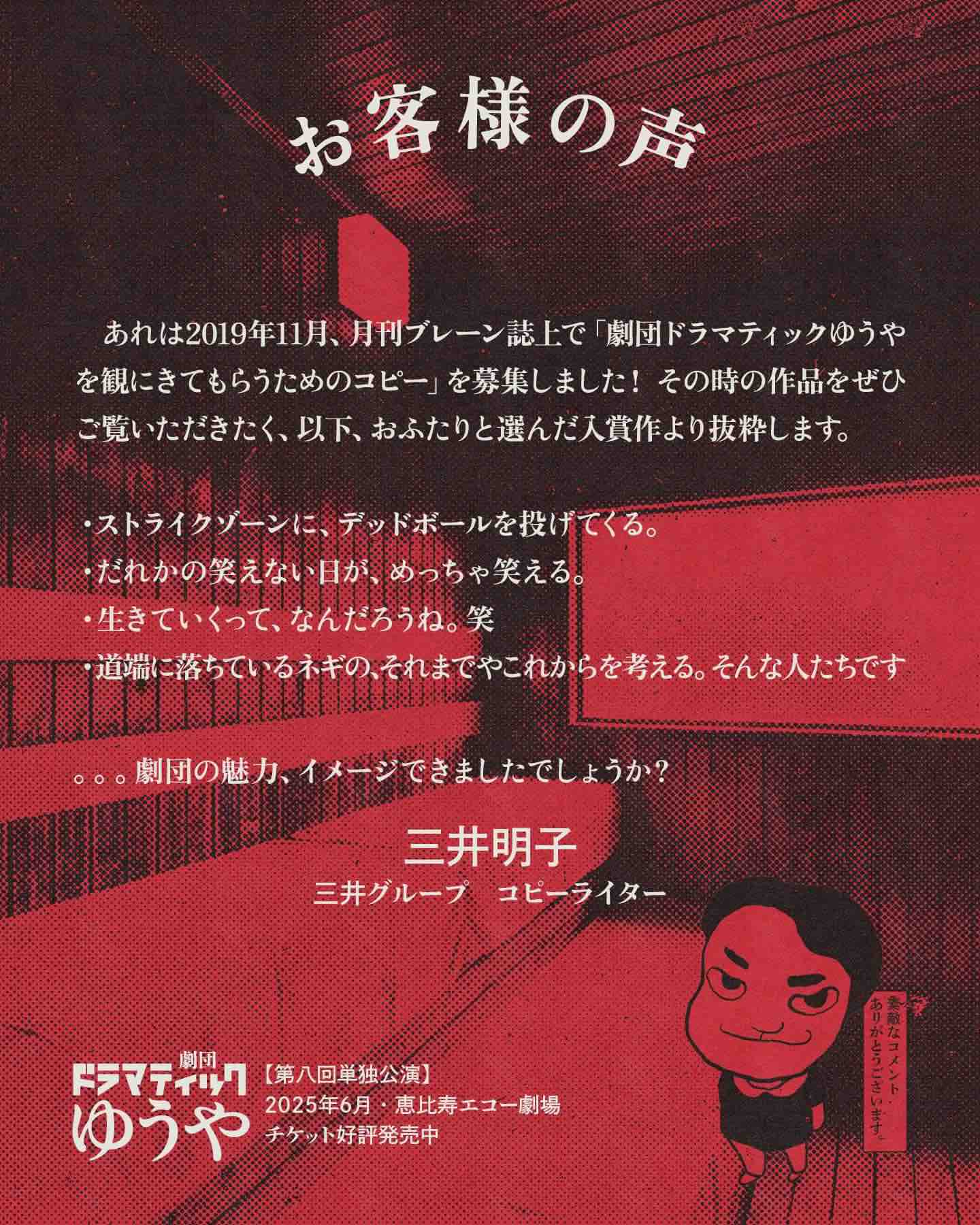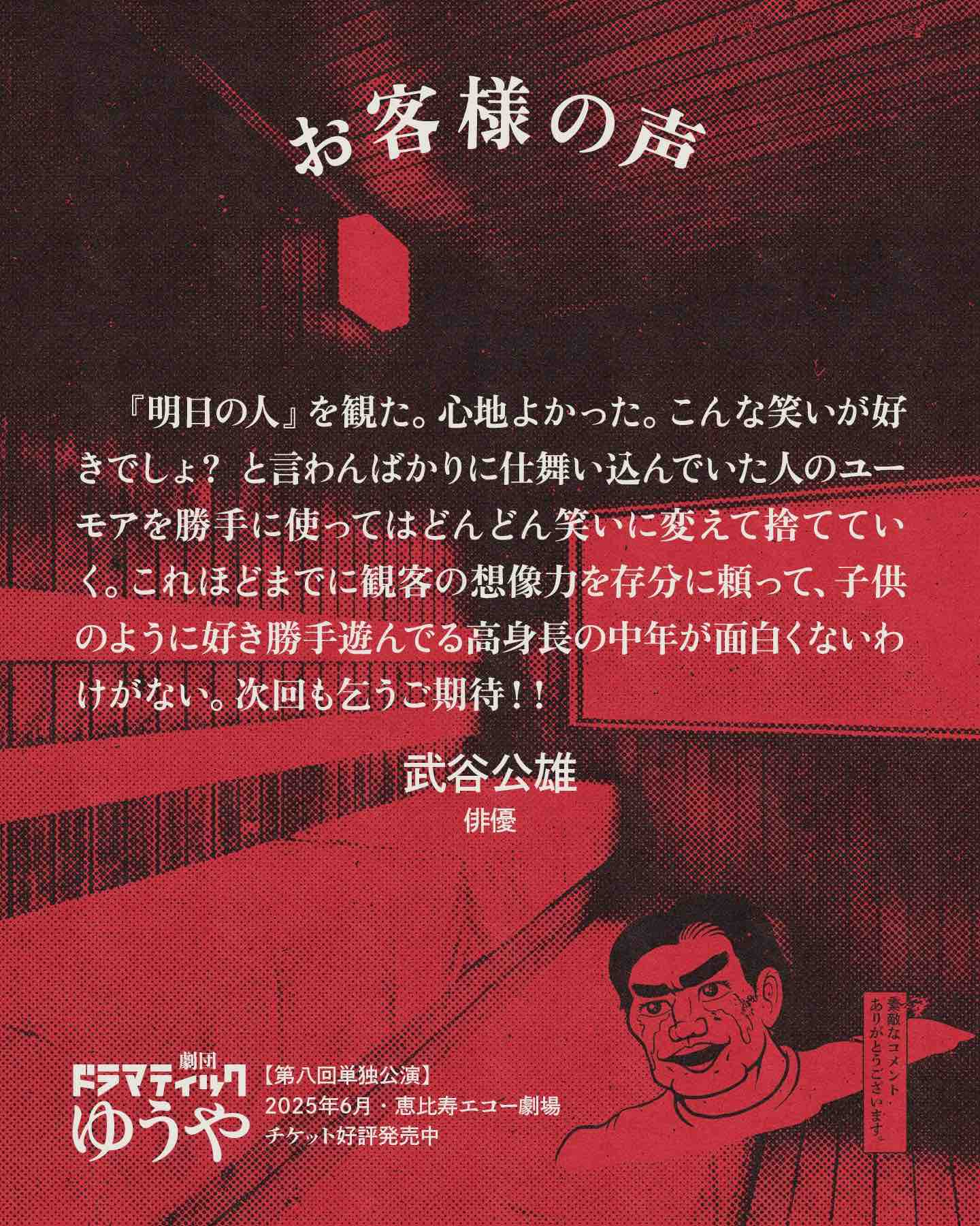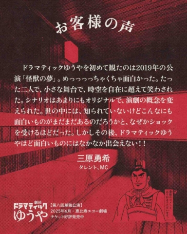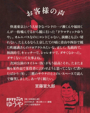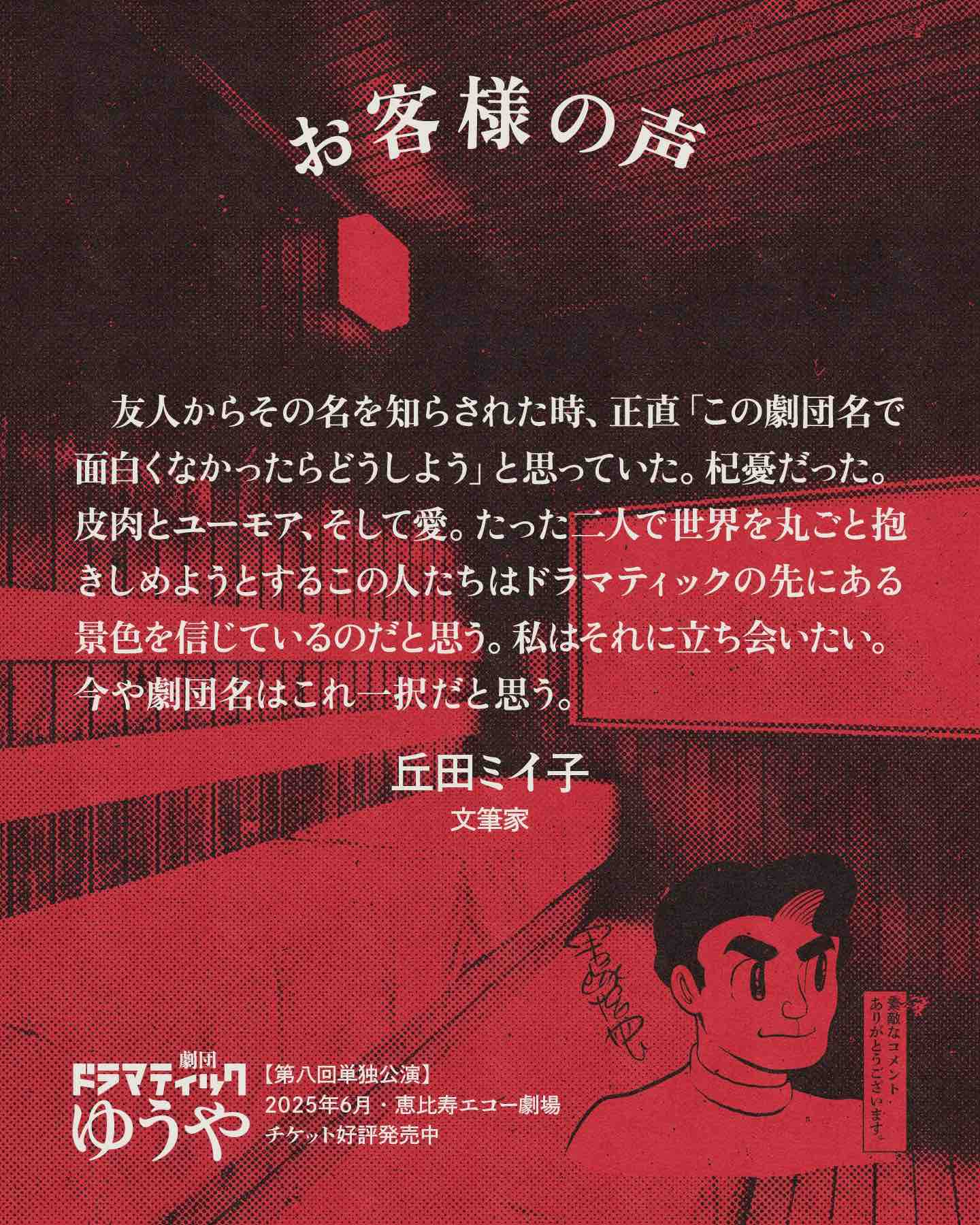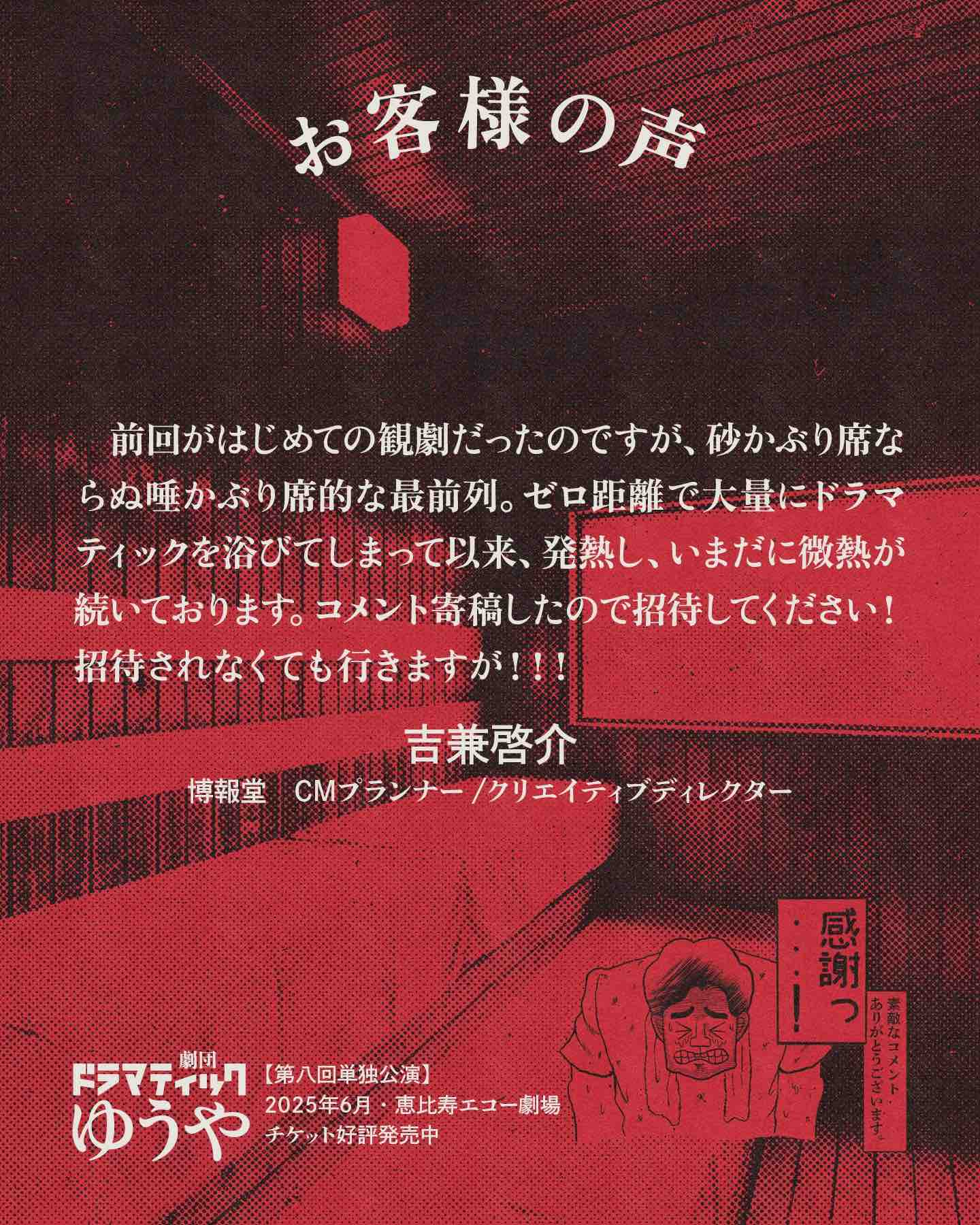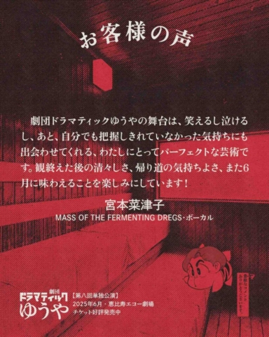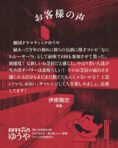 これまで当劇団をご覧になった方々から推薦コメントをいただきました!ありがとうございます!
