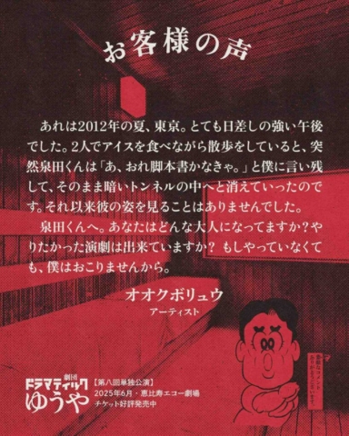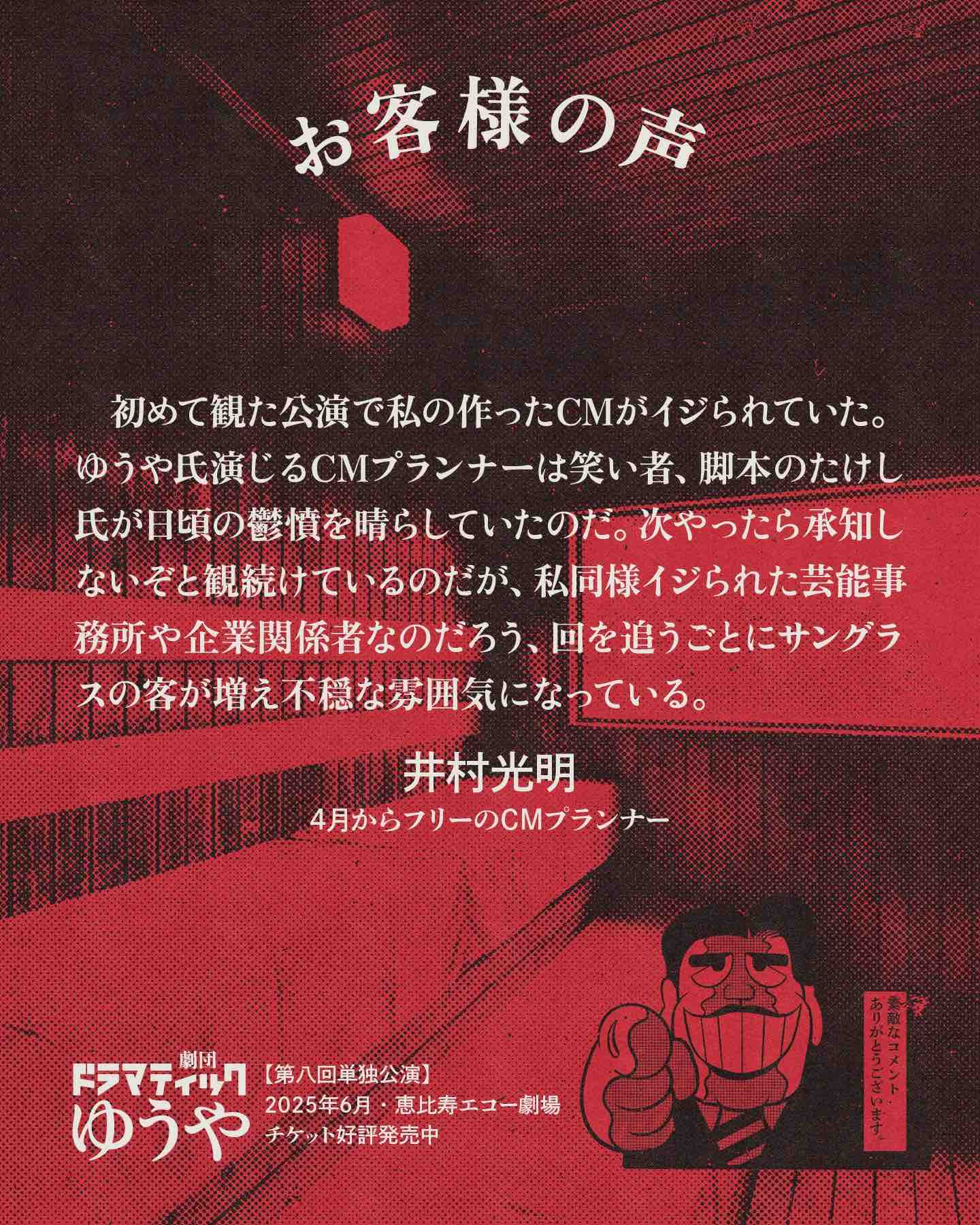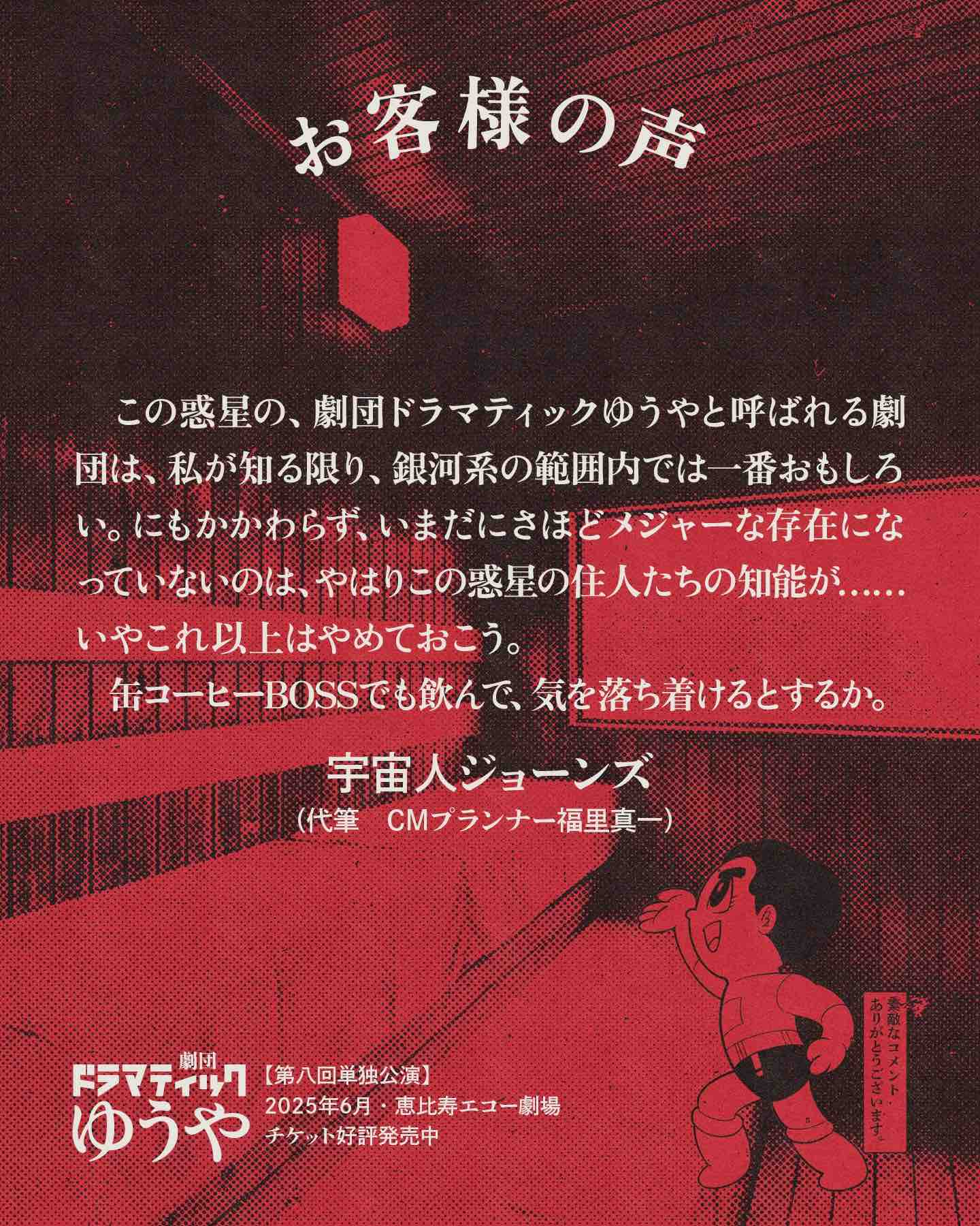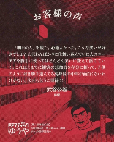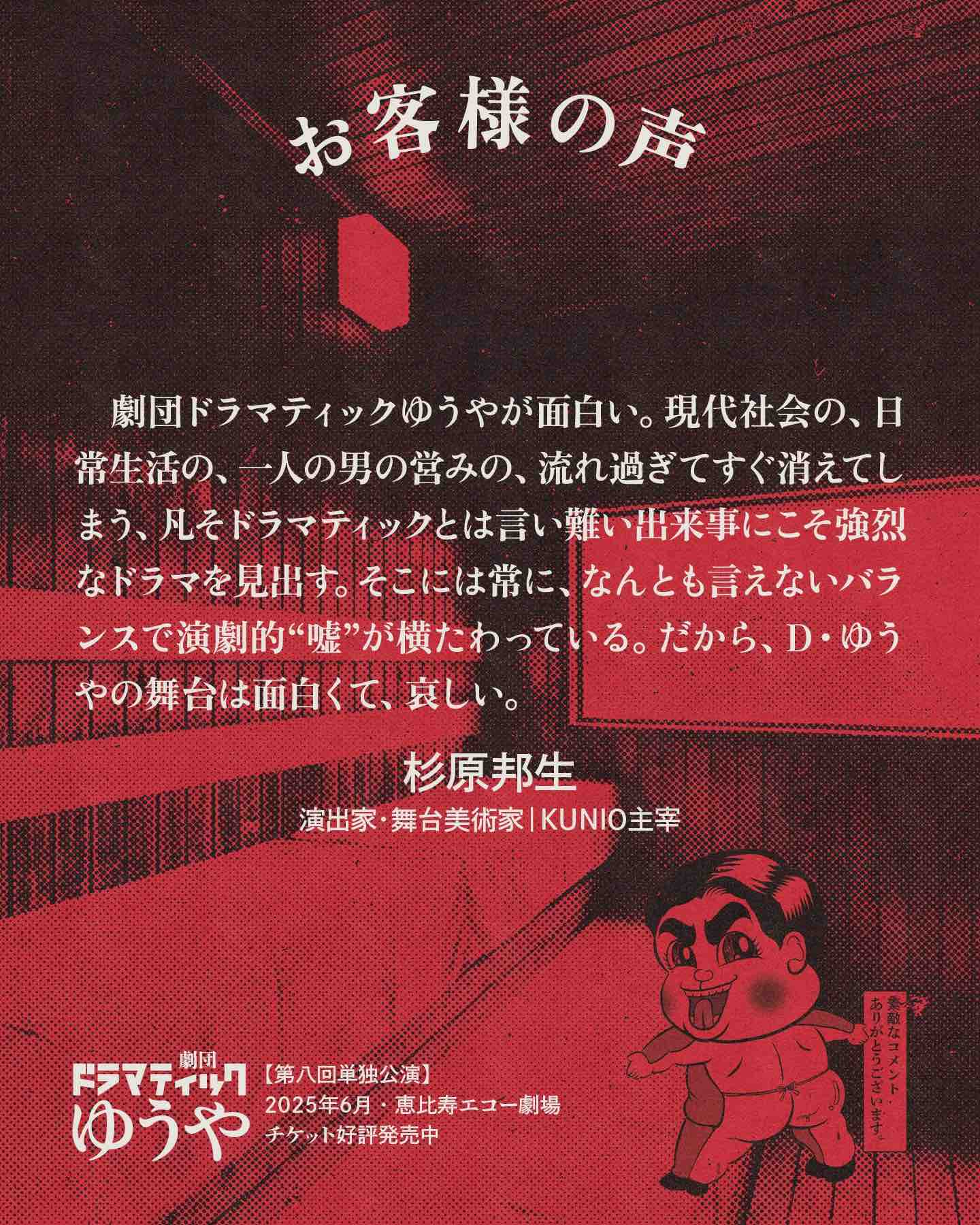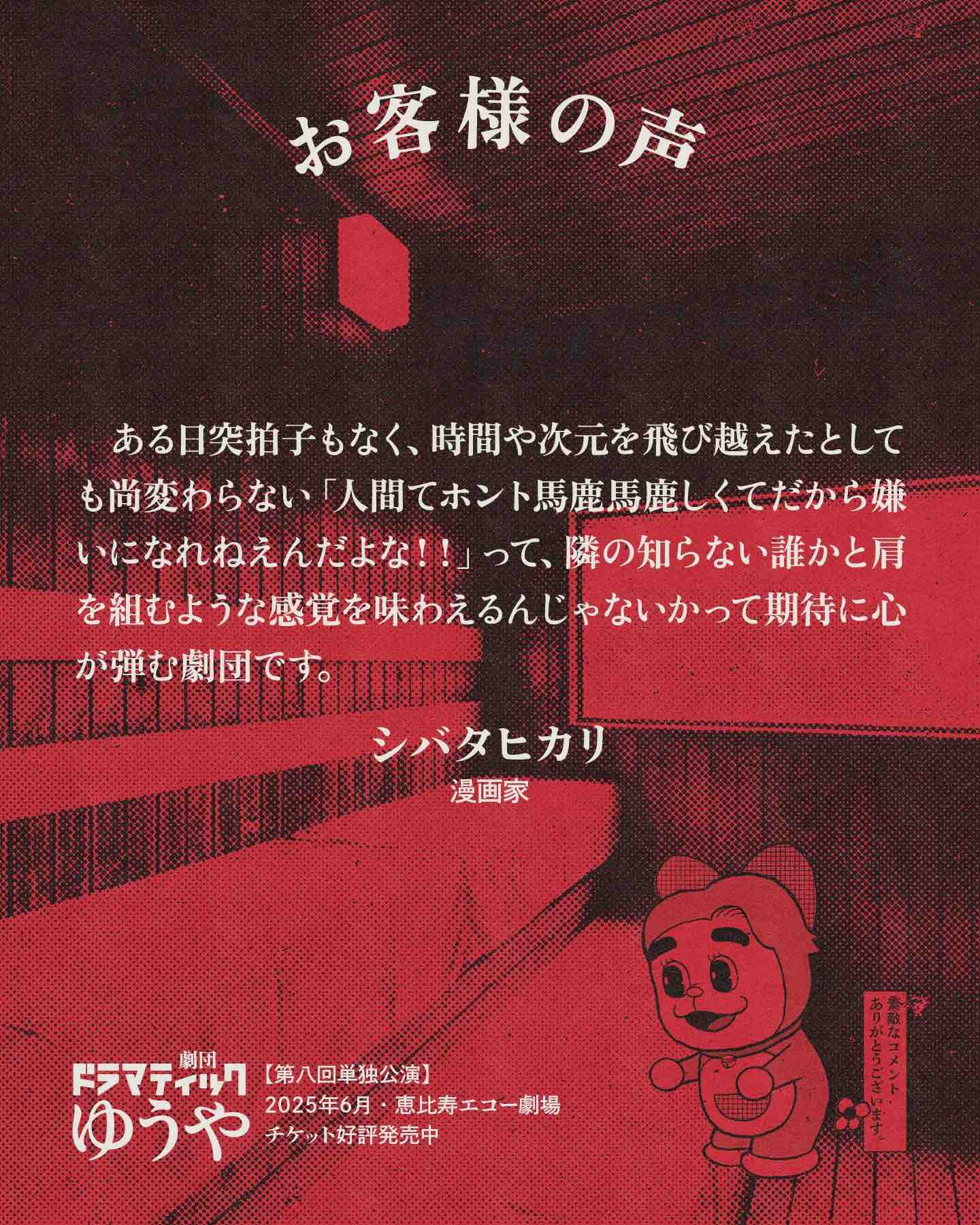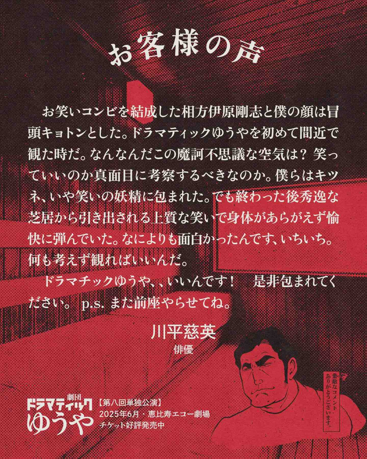 これまで当劇団をご覧になった方々から推薦コメントをいただきました!ありがとうございます!