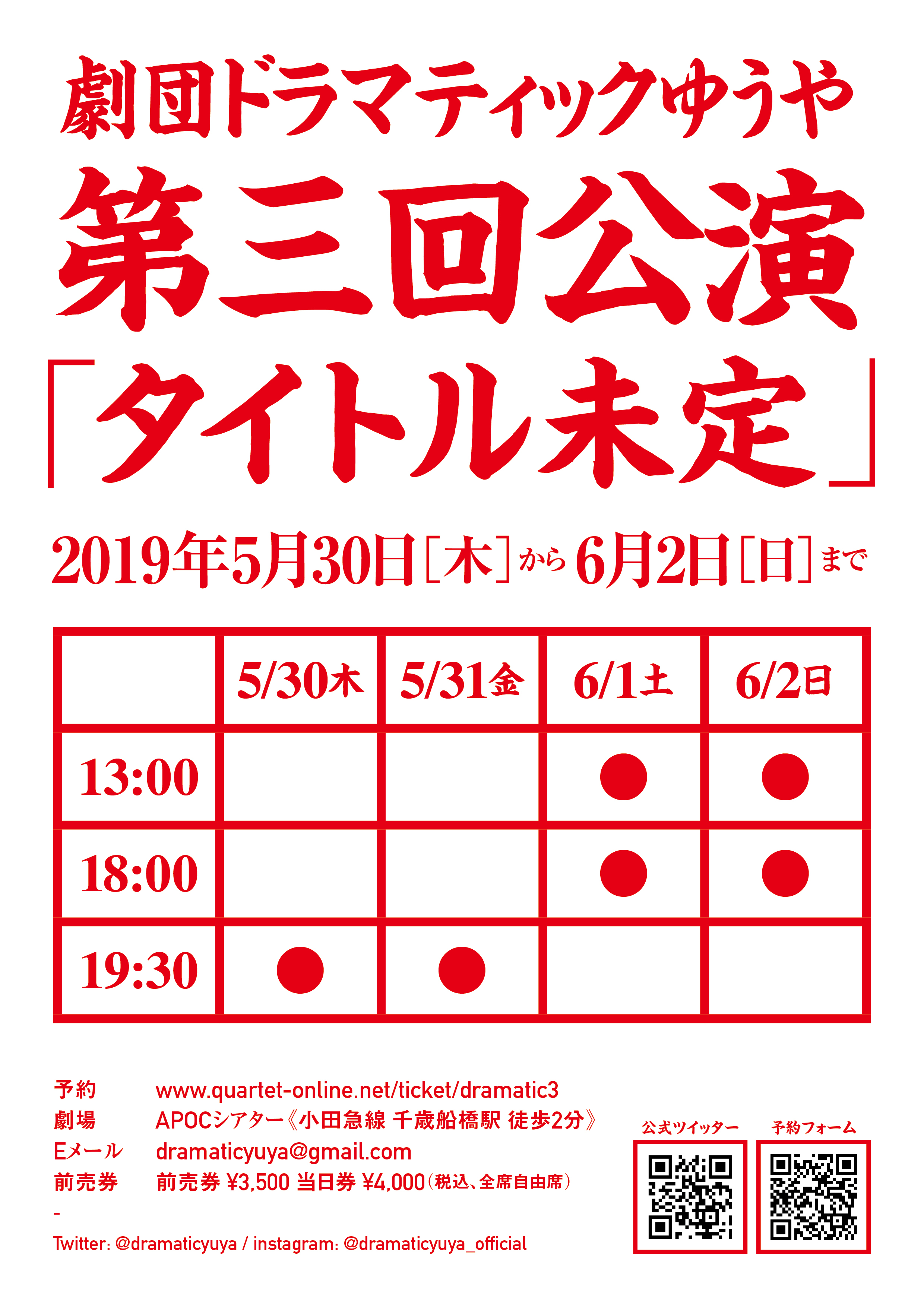 2019年 、劇団ドラマティックゆうや第三回公演の開催が決定しました。